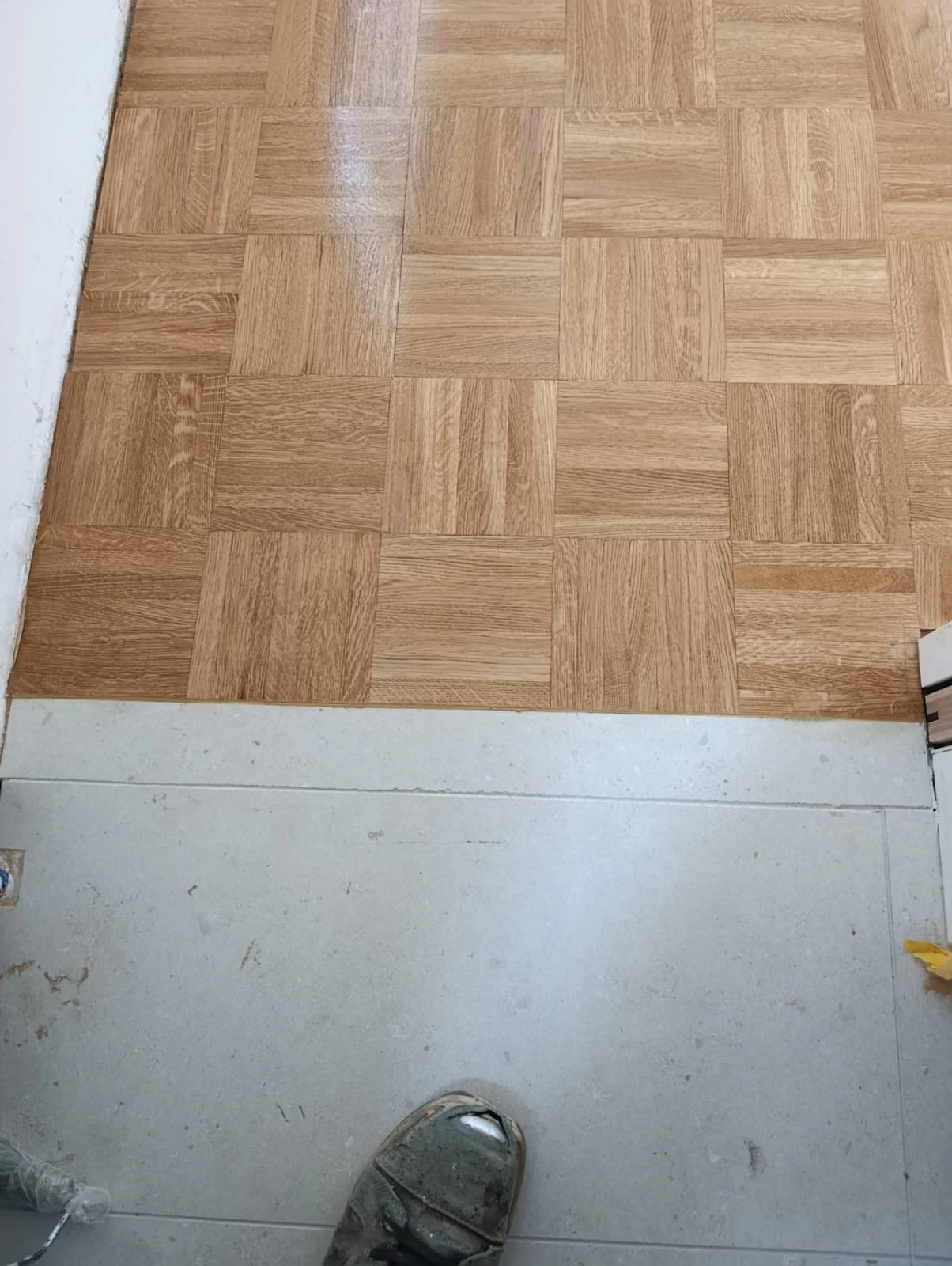 ✔ Het volledige mozaïekpatroon werd met parketlijm van hoge kwaliteit bevestigd